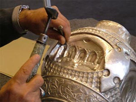 قلمزنی عبارت است از تزیین و کندن نقوش بر روی اشیای فلزی به ویژه مس، طلا، نقره، برنج و یا به عبارت دیگر ایجاد خطوط و نقوش به وسیله قلم با ضربه چکش و بر روی اجسام فلزی. قلمزنی یکی از رشتههای هنرهای سنتی ایران است که در دسته بندی، در رده هنرهای صناعی و در گروه فلزکاری قرار دارد.امروزه برای قلمزنی نخست داخل یا زیر ظرف یا سینی مورد نظر را که معمولاً از جنس نقره یا طلا است از محلول قیر و گچ پر میکنند تا سروصدای قلم کمتر به گوش برسد و همچنین مانع از سوراخ شدن ظرف در حین کار شود. سپس نقش مورد نظر را روی ظرف رسم کرده و قلم مناسب را انتخاب کرده و روی سطح ظرف قرار میدهند و با چکش بر انتهای قلم میکوبند تا شیارها و نقشها با تغییر شدت ضربه روی ظرف ایجاد شوند.
