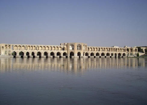 طول سنگهای این پل متجاوز از دو متر و امتداد ستونهای فاصله هر چشمه به سقف ۲۰ متر است جلو هر سقف و دیوار پیش آمدگی و فرو رفتگی وجود دارد اگر تختهای با اندازه دهانه پل ها بگذارند آب رودخانه بالا آمده و مدتی ذخیره میشود. و در قدیم مواقع جشن و غیره نیز قایقرانی مینمودهاند و. در هذه السنه از طرف شهرداری تخته گذاری و قایقرانی و منظره زیبائی ایجاد شده و چنانچه برای خسرانی نداشته باشد، اقدام خوبی است اما نه برای همیشه. در قسمت شرقی پل طرفین دو صفه مسطح سنگی وجود دارد و در وسط آن دو تقریباً در كف رودخانه سنگرس مفصلی دیده میشود و چنانچه نوشتهاند دریاچهای وجود داشته كه از فوارههای آن جستن مینموده است، تا كف رودخانه یازده پله سنگی میخورد، دو طرف شرقی قسمت پائین پل دو شیر سنگی بزرگ از قدیم موجود است كه در بی مبالاتی و جهالت افراد خرابیهائی بدان وارد شده. غرفهها و اطاقهای وسط پل به همان طرز نقاشی و طلاكاری دوره صفئویه باقی است و طبقه بالای اطاقها را در چندین سال قبل خراب نمودهاند. پشت بغلهای این پل از كاشیهای خشت هفت رنگ تزیین شده كه متأسفانه در اثر لاقیدی بی مواظبتی مسئولین امر و یا ت.ثیر باد و باران همه ساله تعداد زیادی از آنها خراب و از بین رفته بود. از وسط پل در طرفین تالار دو راه پله موجود است كه به وسیله آن دو طبقه زیرین میتوان رفت و آمد كرد. تاریخ تعمیر این پل مطابق كتیبه كوفی كه در طرف راست جنوبی پل رو بكار خانه نور است در سال ۱۲۹۰ هجری بسعی نصر الله خان در زمان ناصر الدین شاه قاجار میباشد. اطراف پل مانند قدم در ایام بهار و تابستان و روزهای تعطیل محل گردشگاه عموم اهالی است و بعضی روزها به حدی جمعیت زیاد است كه راه عبور و مرور در طبقه دوم تقریباً مشكل میشود.