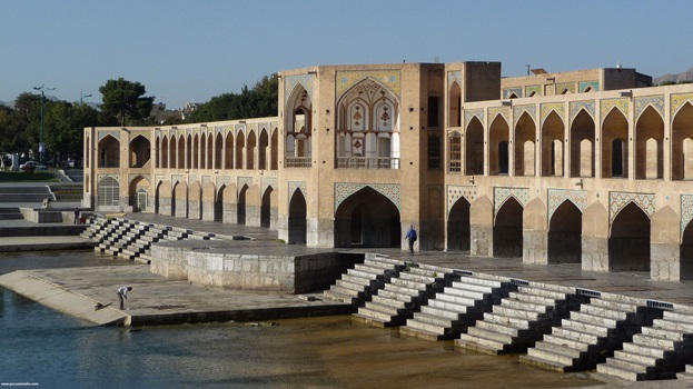 این پل در انتهای شرق خیابان كمال اسماعیل اصفهانی و انتهای جنوبی خیابان خواجو واقع شده است. به طوری كه باستان شناسان تحقیق كردهاند پل مزبور بر روی پلی كه در پیش وجود داشته و خرابی بآن راه یافته بوده بنا گردیه است.